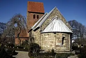 Kor og apsis er opført af uregelmæssige granitkvadre med mange spring i skiftegangen. Apsis prydes af to halvsøjler, over korets hjørner ved apsis ses to fremspringende kvadre med dyrefigurer, disse kan tolkes som levn fra trækirkearkitekturen. I korets sydmur ses en præstedør med ejendommelig profileret karmsten, på et tidspunkt har der været forbindelse fra denne dør til et nærliggende kloster gennem en gang. Tårnets underdel stammer fra et tidligt romansk tårn, der er prydet med en bueslagsfrise med konsolsten udformede som hoveder, frisen fortsætter på skibets mure. Tårnets overdel samt våbenhus er opført af munkesten i sengotisk tid. Tårnets blændingsdekoration mod nord er af den nordvestjyske type.
