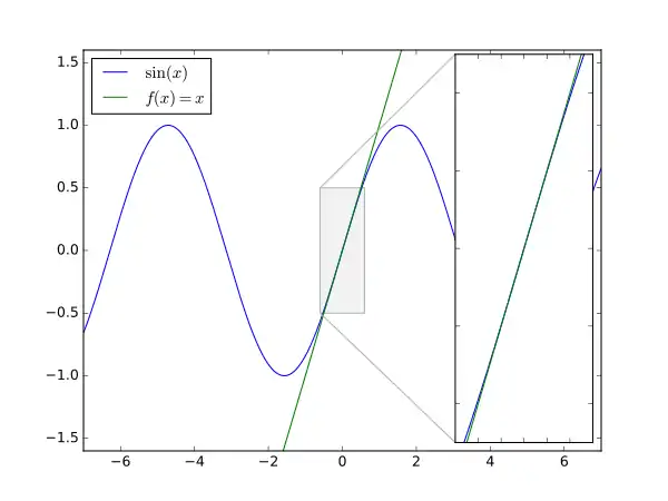 Approksimationen er en taylorudvikling til første orden omkring . Et taylorpolynomium omkring nul for en funktion kan generelt skrives som: