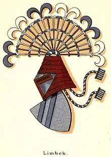 Slægtens våben var to blå skråbjælker i sølv-felt, på hjelmen en busk af vekselvis hvide og blå strudsfjer, der i sigiler fra det 14. århundrede som hosstående våbenafbildning viser, ses i stærkt stiliseret skikkelse; men senere var hjelmtegnet ofte 10 a 13 faner. I nyere våbenbøger er det to vesselhorn, hver delt fire gange af vekselvis sølv og blåt.