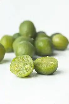 Limefrugten ligner en lille, rund, grøn citron.