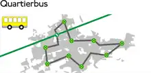 - I provinsbyer benyttes ofte det, der på tysk kaldes Tennisschlägerlinjen (tennisketcherlinjer). Det vil sige, at der køres fra A til B som en radiallinje men herefter køres en ringstrækning endende ved B, hvorefter der returneres til A.
