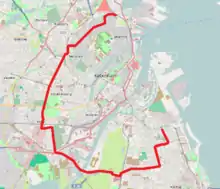 - Svanemøllen st. - Borgervænget - Edvard Griegs Gade - Bellmannsgade - Vennemindevej - Nygårdsvej - Sankt Kjelds Plads - Sejrøgade - Haraldsgade - Hamletsgade - Mimersgade - Nørrebro st. - Folmer Bendtsens Plads - Lundtoftegade - Hillerødgade - Nordre Fasanvej - Solbjerg st. - Søndre Fasanvej - Toftegårds Alle - Valby st. - Toftegårds Plads - Vigerslev Alle - Sjælør Boulevard - Sjælør st. - Borgmester Christiansens Gade - Mozarts Plads - Sjællandsbroen - Vejlands Alle - Center Boulevard - Bella Center st. - Ørestads Boulevard - Vejlands Alle - Amagerbrogade - Sundbyvester Plads - Amagerbrogade - Elbagade - Kastrupvej - Italiensvej - Backersvej - Lergravsparken st.[32]