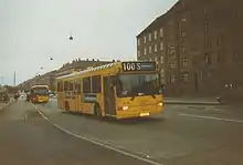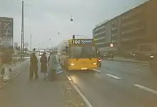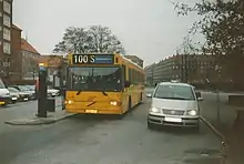 ![]() Linje 100S ved Toftegårds Plads i december 2003. | |