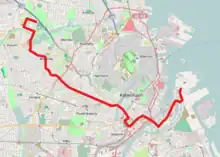 - Refshaleøen, Christianshavn st., Christiansborg, Glyptoteket, Hovedbanegården, Rådhuspladsen, Forum st., H.C. Ørsteds Vej, Falkoner Allé, Nordre Fasanvej, Grøndal st., Hulgårdsvej, Brønshøj Torv, Veksøvej.