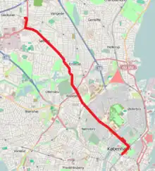 - Buddinge st., Emdrup Torv, Tuborgvej, Bispebjerg st., Skjolds Plads st., Fredrik Bajers Plads, Blegdamsvej, Nørreport st.