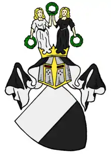 Slægten fører et af sort og sølv tværdelt skjold, på hjelmen en hvidklædt jomfru og en sortklædt moriankvinde, holdende mellem sig en grøn krans, hvori en seksoddet guldstjerne, og hver i den anden hånd en grøn krans.