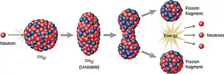 Fermi og hans medarbejdere viste i 1934, at hvis man bombarderede uran med neutroner, blev der dannet mindst fire radioaktive produkter, hvoraf to havde atomnumre, der var større end urans.[20] I midten af 1938 fortsatte Meitner, sammen med kemikerne Otto Hahn og Fritz Strassmann på Kaiser-Wilhelm-Institut, disse undersøgelser og fandt at processen resulterede i mindst ni produkter, hvoraf seks havde en atomvægt større end uran.[21] Meitner, Hahn og Strassmann bombarderere også thorium med neutroner og fandt, at der blev dannet flere forskellige isotoper.[22]