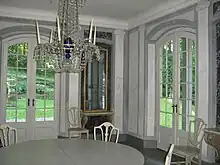 Lystslottets rum har alle nyklassicismens spinkle dekorationer og sarte farvevalg. Hovedparten af inventaret stammer fra Calmettes indretning. Havesalen ligger bag søjlefronten og åbner sig gennem tre glasdøre mod haven. Her hænger de såkaldte Liselundspejle, ovale spejle ophængt i spinkle ranker og bånd. Rummets bagvæg har ovnnicher i hjørnerne. I den ene står en norsk fedtstensovn og i den anden en attrap af træ. Formålet med en falsk ovn var at opretholde den symmetri i rummet, der var så vigtig i nyklassicismens interiørkunst. Spisesalen ligger mod syd og har glasdøre til hele tre sider. Væggene med pilastre er nu marmorerede, men har oprindeligt været bemalet med skovmotiver. Bordet og de mange hvidmalede stole hører til Calmettes oprindelige inventar og er utvivlsomt udført på Lillies værksted.