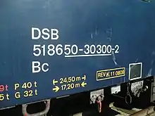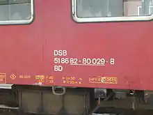 - B = Personvogn med 2. klasse (BB – BC) eller 2. og 3. klasse (BD – BR)