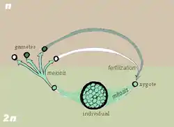 I hele denne cyklus er gameterne oftest de eneste haploide celler, og mitose forekommer kun i den diploide fase.