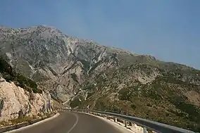 ![]() Udsigt mod Maja e Çikës fra hovedvej SH8 | |