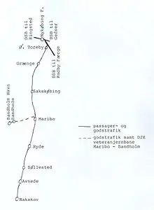 - Vandring og cykling på nedlagte jernbaner i Danmark#Lollandsbanen: Nykøbing F-Ø. Toreby