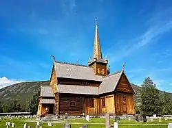 Stavkirken i Lom var oprindeligt en treskibet langkirke med kor og svalegang, som senere blev tilføjet en apsis. Den er viet til Jomfru Maria, Johannes Døberen og Olav den hellige[1] og er fortsat i brug for kirkehandlinger i bygden.