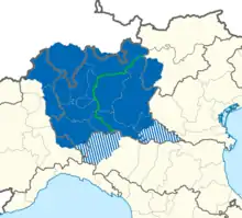 | Udbredelsen af lombardisk i Italein og alpeområdet: | ![]() | |