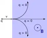 Derfor vil en positiv ladet partikel blive accelereret i lineær retning som E feltet men vil danne en perpendikulær kurve til B, i henhold til højrehåndsreglen.