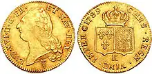 En Louis d'or svarede i 1640 til 10 livres og blev præget frem til 1794, hvor den modsvarede 24 livres. Finvægten var frem til 1709 6,02 gram guld, derefter frem til 1785 oftest 7,28 gram, derefter 6,80 gram. Også halv- og kvartlouis d'orer blev præget.[3]