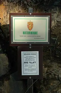 Her er det en fjeldskrænt som er beskyttet som naturminde. Brug af hammer og udtag af sten er ikke lovligt.