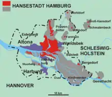 Til gengæld blev byområderne op til byen, som Altona, Harburg-Wilhelmsburg og Wandsbek, overført til Hamborg. På den måde blev områderne som indtil da hed «Fire-by-regionen» samlet.