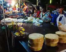 Kratongs (lanterner) til salg. De til højre, er fremstillet af brød i stedet for en banapalmeskive, så fiskene kan spise den udtjente krathong. Koh Samui (2015)