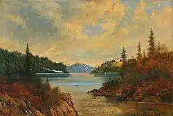 ![]() Fjordparti på en skyet efterårsdag af Carl Ludvig Messmann, 1889 | |