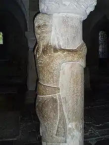 Laurentius var rådvild om de krav; men da han lå og hvilede på en høj, hørte han jættens kone tale til sit barn inde i højen, hvor hun sagde: "Ti stille, barn - i morgen kommer Finn, din far, hjem og giver dig sol og måne at lege med!" Sankt Laurentius skyndte sig tilbage til kirken og hilste jætten ved navn. Finn blev så rasende over, at bygherren havde fundet ud af hans navn, at han ville vælte søjlen. I stedet blev han forvandlet til sten, og kan stadig ses i omfavnelse med søjlen.