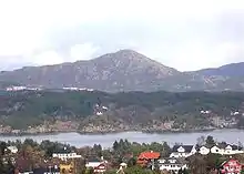 ![]() Lyderhorn set fra syd med Loddefjord vest for bydelen Laksevåg i Bergen.  | |