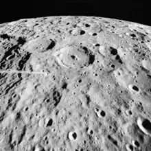 Et månekrater er en dannelse på overfladen af Månen, som langt overvejende er dannet ved nedslag af objekter.[1] Månens overflade er dækket af kratere; der er en halv million kratere, som er mere end 1,6 km brede, og man har beregnet, at der findes omkring 50 billioner kratere, som er mindst 30 cm brede.[2] Nedslag rammer med en stærkt varierende fart, idet 20 km/s er en typisk værdi. Et nedslag med denne hastighed frembringer et krater, hvis diameter er 10 til 20 gange større end det legeme, som slår ned.[3]