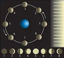 Månens udseende varierer i løbet af dens baneomløb og fremviser følgende månefaser: