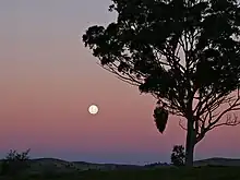 Farvekonstansen i menneskets synssans rekalibrerer forholdet mellem farven af et objekt og dets omgivelser, og fordi den omgivende himmel er forholdsvis mørk, ser Månen mere lysende ud.