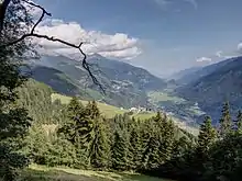 Möll løber derefter ned til Heiligenblut, parallelt med Großglockner-Hochalpenstraße, og længere mod syd adskiller bjergene i Schobergruppen i vest fra Goldberggruppen i øst. I kommunen Winklern, nær grænsen til Tyrol (Østtyrol) ved Iselsbergpas drejer den mod øst, løber gennem den brede, nedre del af Möll-dalen (tysk: Mölltal) langs den nordlige kant af Kreuzeckgruppen .