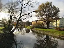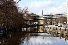 Gennem Mölndals centrum løber åen i en underjordisk tunnel, og endnu en tunnel findes i Krokslätt ved kommunegrænsen til Göteborg.