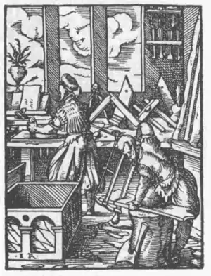 Snedkerværksted, 1568. Illustration fra Joost Amman og Hans Sachs.