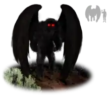 Den 15. november 1966 var to unge nygifte par fra Point Pleasant, David og Linda Scarberry og Steve og Mary Mallette, ude at køre bil en sen nat. Da de var seks kilometer væk fra Point Pleasant, kunne de, i nærheden af en gammel dynamitfabrik fra anden verdenskrig, se noget ude i vejkanten, der lignede øjne, som reflekterede lyset fra billygterne. Da de standsede, så de et underligt væsen komme frem. De beskrev det mystiske væsen sådan: