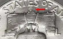Møntmærke markeret på en amerikansk halvdollar-mønt