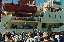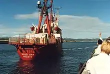 ![]() Nella Dan ved iskanten i Antarktis, 1981. | |
