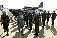 ![]() Den brasilianske præsident tager afsked med de styrker, som skal danne sikkerhedsdelen i MINUSTAH | |
