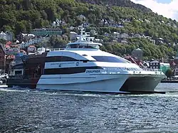 M/S «Draupner» på Vågen i Bergen, i Flaggruten til Stavanger. Foto: Harald Sætre