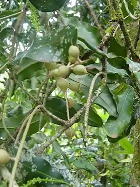 Macadamia integrifolia er et lille, stedsegrønt træ med en tæt, busket vækst. Nødderne er meget næringsrige og det meste af fedtindholdet består af flerumættede fedtsyrer. Blomsterne giver en god honning, og veddet er meget holdbart. Nødderne er giftige for hunde.