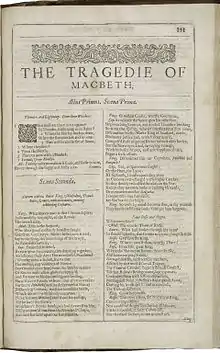 Macbeth er en tragedie skrevet af William Shakespeare; handlingen er løst baseret på den historiske konge Macbeth af Skotland.