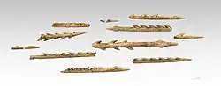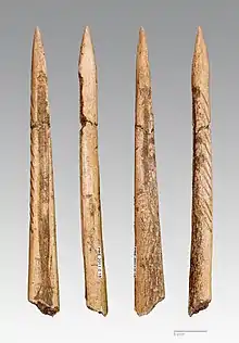 Spydspidser af rensdyrhorn fra mellemste Madeleinetid (12.000–15.000 år gamle), fundne i Saint-Antonin-Noble-Val i Frankrig.