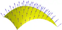 Her er en infinitesimalt arealelement, der peger vinkelret på overfladen.[1]