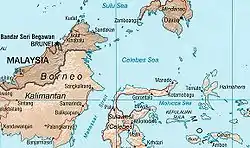 Kort som viser Makassarstrædets placering. Afmærket som Makassar Strait