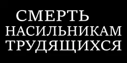 ![]() Flag benyttet af Makhnobevægelsen med teksten 'Død over arbejderklassens undertrykkere' | |