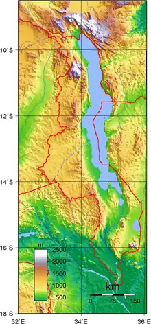 Malawi er blandt de mindste lande i Afrika. Malawisøen optager omkring en tredjedel af Malawis område.[10]