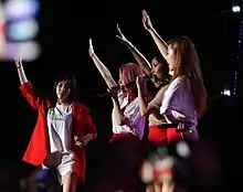 ![]() Mamamoo fremfører "Mr. Ambiguous" ved Holgabun Festival den 19. maj 2018. Fra venstre mod højre: Hwasa, Wheein, Solar og Moonbyul. | |