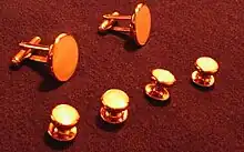 Et sæt matchende manchetknapper og brystknapper til brug på en frakke eller smokingskjorte