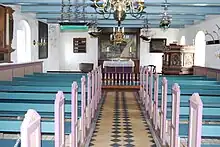 De fire kirkeskibe minder om, at mange af øens beboere tidligere var søfolk. Orlogsskibet Tre Kroner er fra før 1768, de tre andre er fra 1800-tallet, 1939 og 1947. Kirkens orgel er fra 1976.