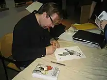 - Assistent, der tegner blyantstegningerne op med tusch.