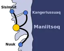 Tidligere rutenet ved Maniitsoq Lufthavn. I dag er ruten til Sisimut nedlagt.