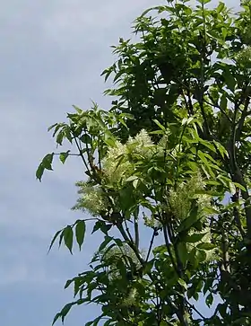 Barken er først brunoliven og glat, senere grå og til sidst opsprækkende i flade furer. De modsatte knopper er gråbrune og kegleformede. Bladene er uligefinnede med 7 småblade. Småbladene er aflangt ægformede med svagt takket rand. Både over- og underside er lysegrønne og glatte. Blomsterne er samlet i overhængende toppe. De er uregelmæssige med smalle, flødehvide kronblade. Der kan af og til mærkes en let duft ved blomsterne. Frugterne ligner den almindelige asks vingede nødder, og de spirer udmærket.